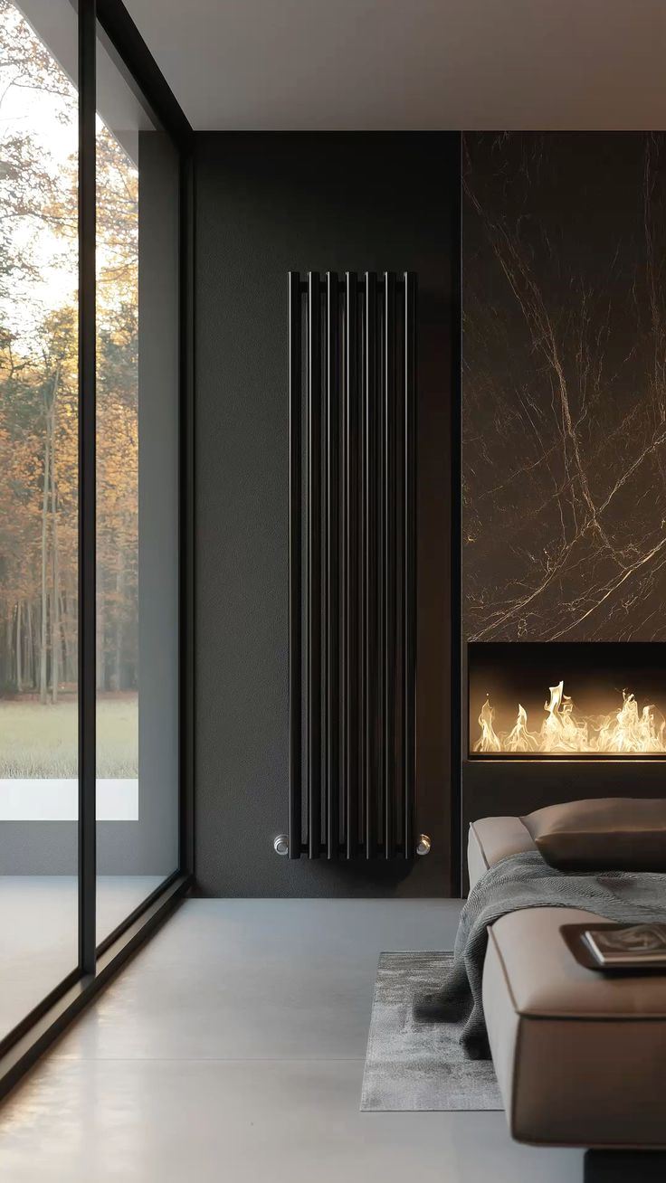 Вертикальные радиаторы экономят место. Устанавливаются в простенки между окон, ниши, углы комнат и т.д. Вертикальные радиаторы повторят стиль помещения с высокими потолками и интерьеры с вертикальными элементами.