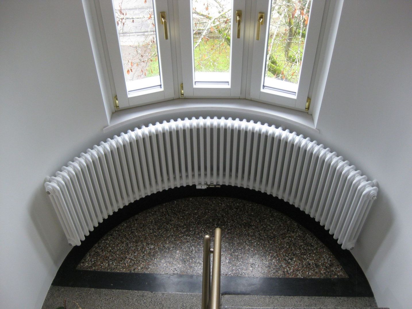 Радиусные радиаторы можно установить в эркеры. Это однозначно будет очень нестандартным решением в дизайне помещения.
