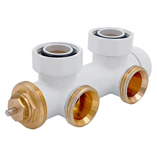 Готовый узел нижнего подключения объединяет в одном корпусе термостатический клапан и декоративную накладку, что значительно упрощает монтаж и улучшает внешний вид системы отопления.