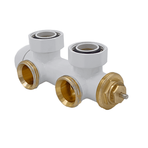 Готовый узел нижнего подключения объединяет в одном корпусе термостатический клапан и декоративную накладку, что значительно упрощает монтаж и улучшает внешний вид системы отопления.